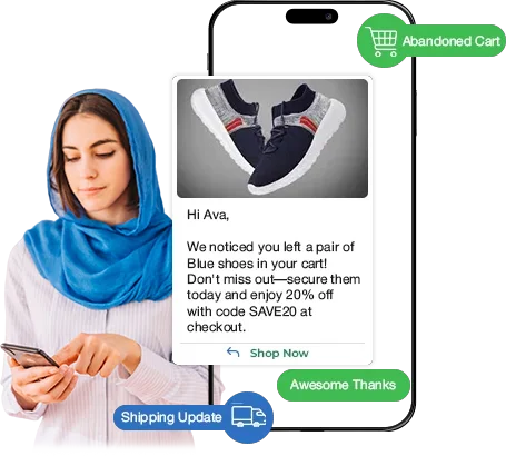 AI-driven conversational flows in minutes to automate product inquiries, handle order tracking, and showcase your latest collections in both English and Arabic.