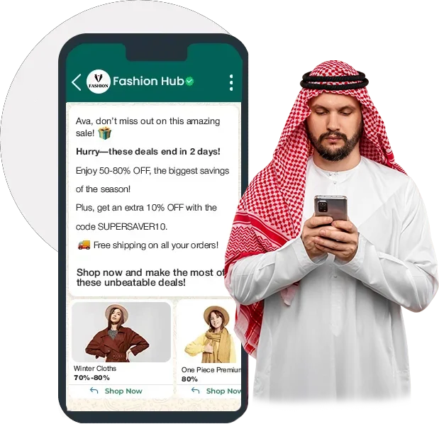 Broadcast time-sensitive deals and flash sales directly to your customers’ phones during key retail periods like Hala February and White Friday. Send easy-to-copy discount codes that drive instant action.