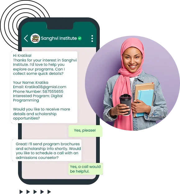 Example: Engage parents immediately after they click your social media ad, qualify them based on age group, and schedule a campus tour directly through WhatsApp.