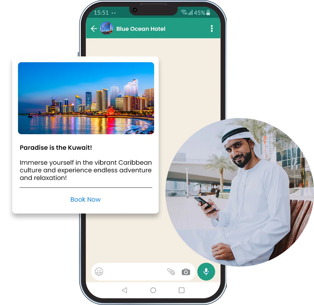 Example: “Marhaba [Guest Name]! Unwind after your travels with 20% off a massage at our Spa. Reply ‘BOOK’ to reserve your appointment for this evening.”