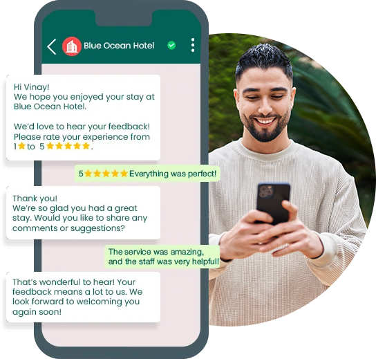“We hope you enjoyed your stay! Please rate your experience via WhatsApp—your feedback helps us serve you better.”