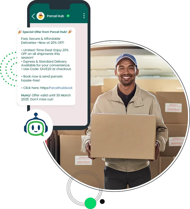 Transform your delivery service into a growth engine. Re-engage inactive customers and drive shipment volume during key periods—like White Friday or National Day—by broadcasting targeted offers and exclusive business rates directly to the channel they check most.